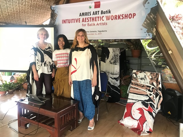 Percobaan pelatihan Batik Intuitive pertama diselenggarakan pada bulan November bertempat di Grahatma Semesta, perusahaan milik Bapak Cahyo. 20 orang seniman batik asal Yogyakarta diundang untuk berpartisipasi dalam kegiatan ini. Rasa Balte Balciuniene, Founder AMRES ART, menjadi pengisi materi dalam pelatihan yang berlangsung selama satu hari. Terjadi dinamika yang cukup menarik dalam pelatihan ini, beberapa peserta merasa memiliki hambatan ketika diminta untuk mempraktikkan pendekatan estetika intuitif dalam pembuatan batik. Mereka merasa sedikit kesulitan untuk keluar dari kerangka berpikir bahwa batik tidak terbatas pada motif tradisional yang bersifat repetitive. Pada sesi terakhir, Rasa mengadakan sesi intrepretasi karya dari sudut pandang psikologi. Seluruh peserta antusias dengan sesi ini dan secara aktif meminta karyanya untuk diintrepretasikan.